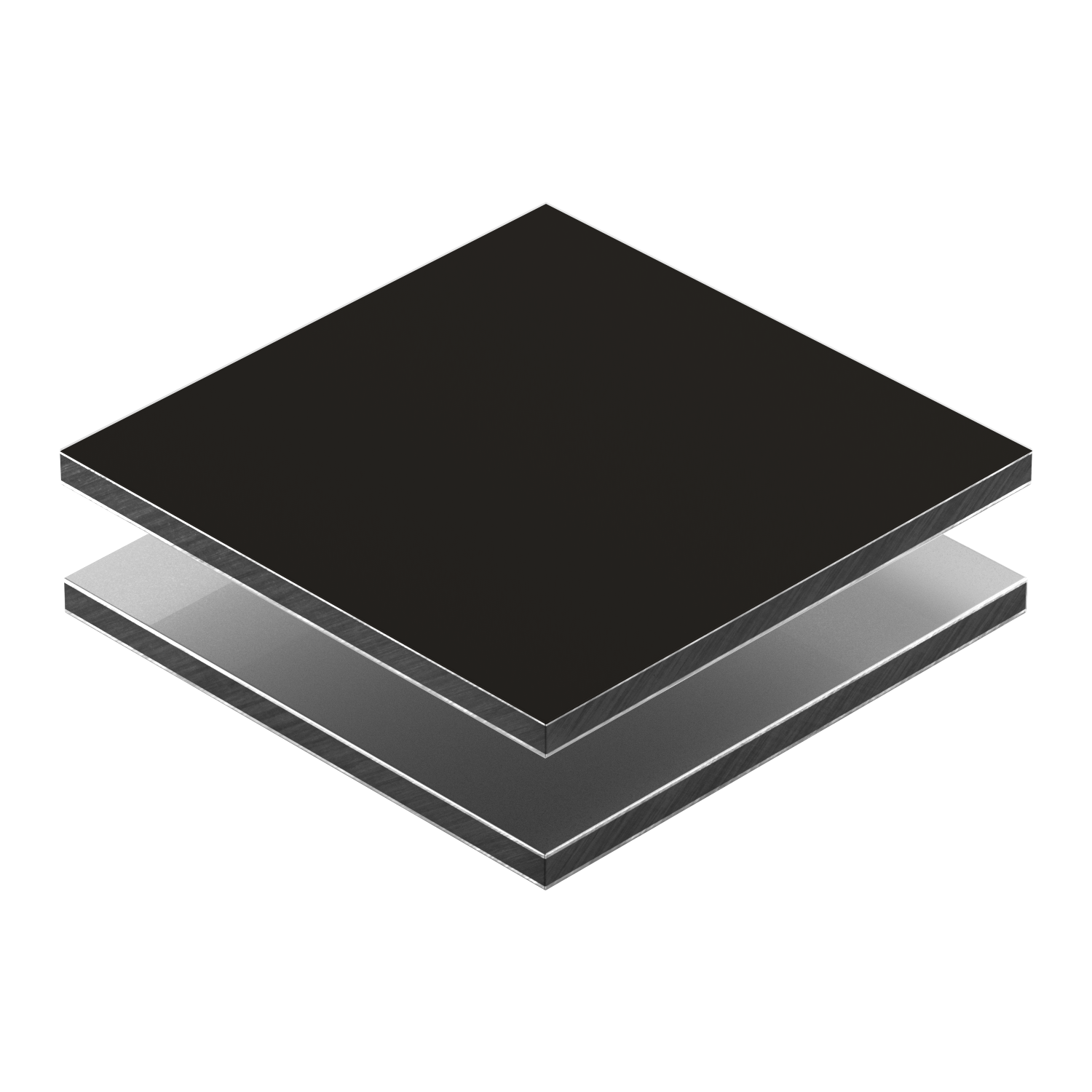 Placa em polietileno (PE) compacto de alta densidade, produzido sob extrusão, co-laminada com duas placas de alumínio.