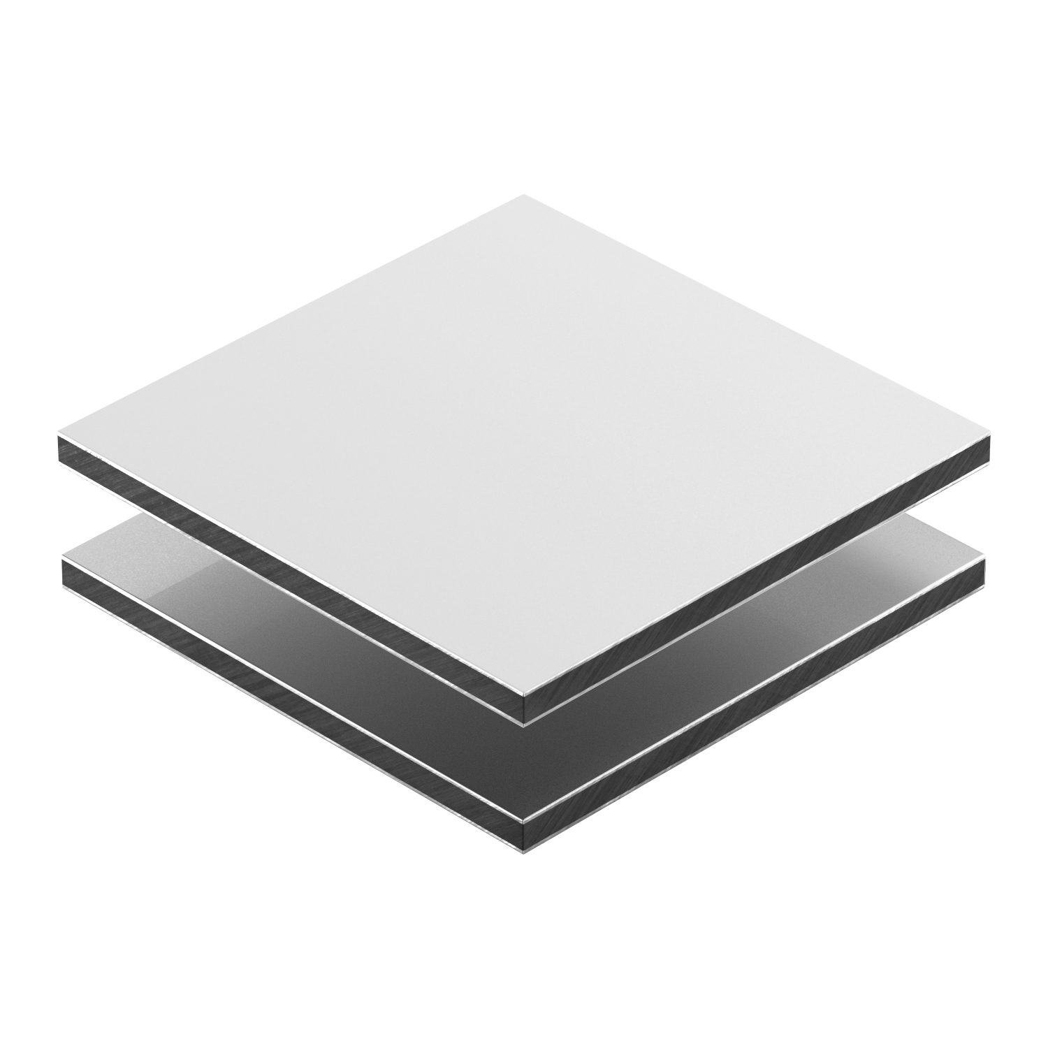 Placa em polietileno (PE) compacto de alta densidade, produzido sob extrusão, co-laminada com duas placas de alumínio.