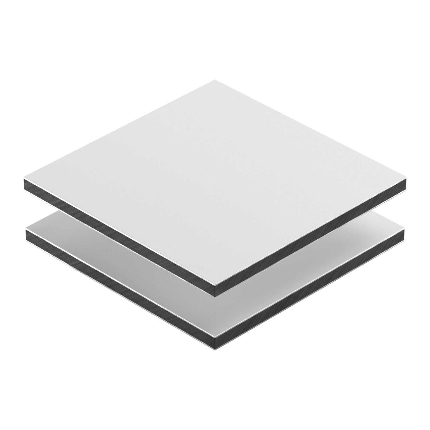 Placa em polietileno (PE) compacto de alta densidade, produzido sob extrusão, co-laminada com duas placas de alumínio.