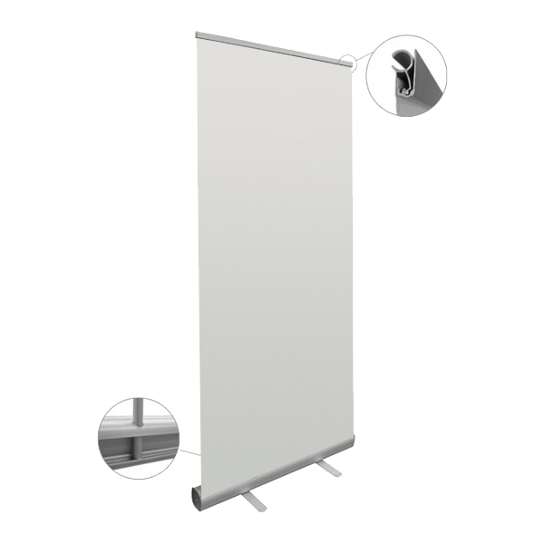 Expositor com estrutura em alumínio, com enrolador de molas.