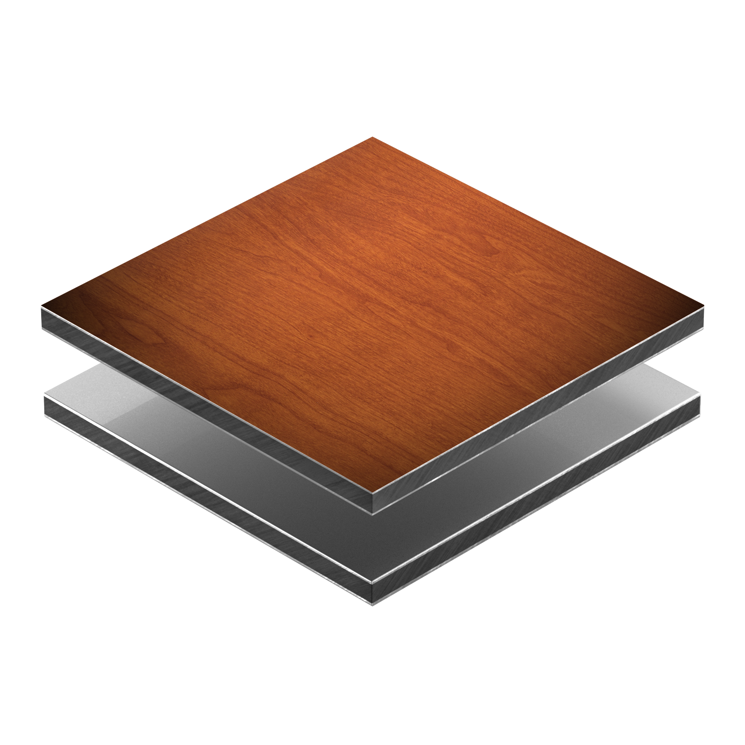 Placa em polietileno (PE) compacto de alta densidade, produzido sob extrusão, co-laminada com duas placas de alumínio.