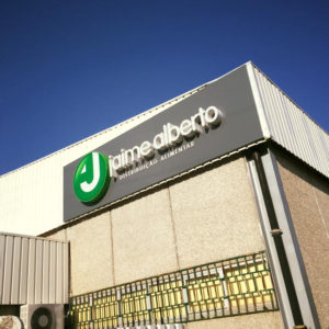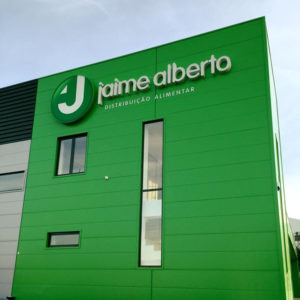 Reclames monobloco, com lettering e logo moldados em perfil de alumínio 150mm, lacados à cor institucional.