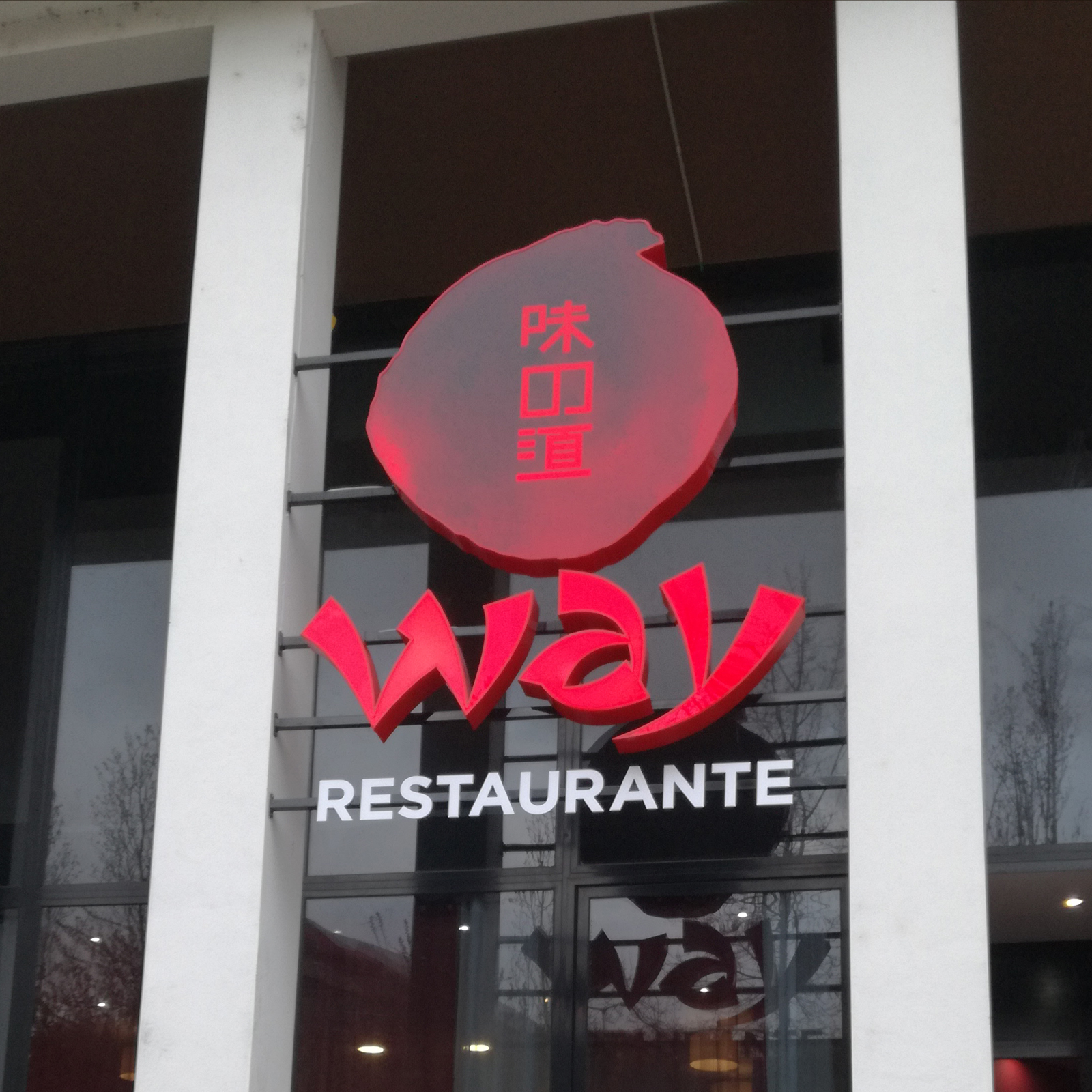 Reclame luminoso em tipologia monobloco, moldado em alumínio lacado à cor institucional, com frentes em acrílico vermelho impresso em UV. Iluminação interior por módulos led vermelhos.